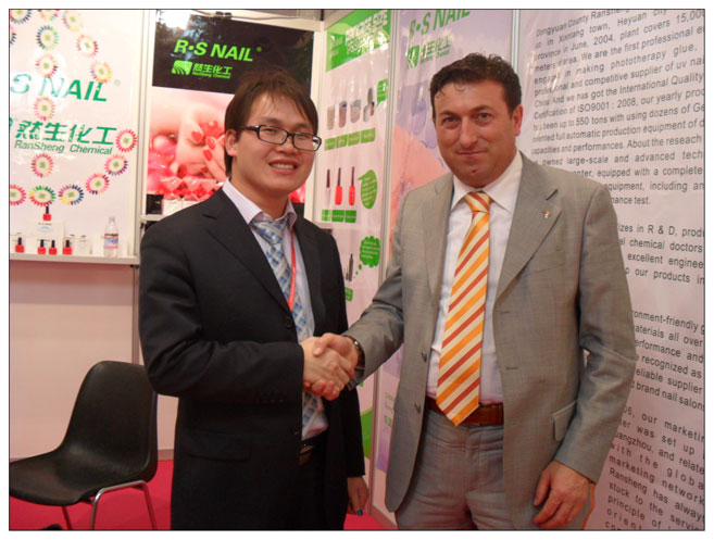 第四十五届博罗尼亚美容美发展于2012年3月9日到12日在意大利博罗尼亚举行,作为全球规模最大最有影响力的美容美发展览会之一,其吸引了不少全球各地专业美容美发界人士前来参加。展会期间,河源市然生新材料有限公司作为中国美甲行业少有的真正集研发,生产,销售于一体的厂家,然生展出了倍受瞩目的新研发产品,包括可双光源灯固化的三合一甲油胶(即底胶+甲油胶+封层于一体的光疗胶),魔幻甲油胶,温变甲油胶等。几百种熠熠生光、五彩缤纷的精选色 新产品的面世,产品的新颖性,使用方便性,气味小 合理的价格及产品质量的稳定性等特点得到了广大客户的一致好评,在未来的日子里我们会携手共创佳绩!